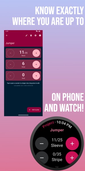 I always have several craft projects on the go and use either paper or a physical stitch counter to keep track of where I am up to. Now I have a wearable device I decided to build this app!